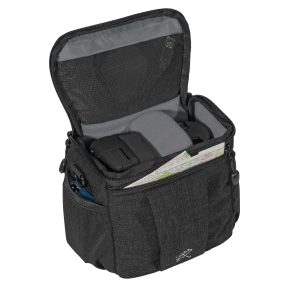 - Ruime opbergruimte voor camera’s met kleine tot middelgrote lenzen en een extra reservelens