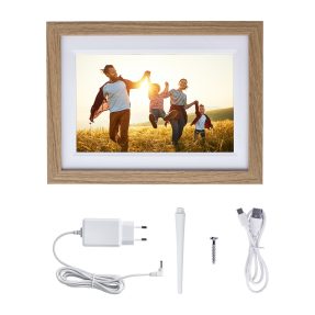 De fotolijst kan zowel staand als liggend worden neergezet dankzij de afneembare fotostandaard, en is ook eenvoudig op te hangen in zowel horizontale als verticale positie. Hierdoor kun je hem altijd precies plaatsen zoals het in jouw interieur het beste tot zijn recht komt. Het ontwerp in eikenhout-look met een wit passe-partout geeft de lijst een warme en moderne uitstraling, waardoor hij moeiteloos past in vrijwel elke woonstijl. De Smart Frame WiFi 1010 is daarmee niet alleen een prachtig decoratief element, maar ook een bijzonder persoonlijk cadeau voor familie of vrienden.